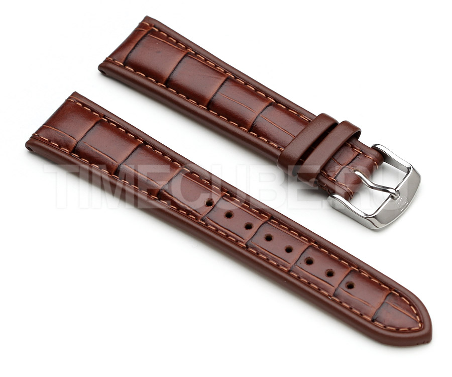 Ремень для мужских часов. Материал: натуральная кожа теленка. Цвет: коричневый, полуматовый. Прострочка в тон основного цвета. Ремень имеет утолщение к корпусу часов от 18 до 22 мм. С фиксатором петли. Цвет металла застежки: серебро. Внутренняя поверхность с перфорацией. Водостойкость при длительном погружении до 100 м. Производитель: "Di-Modell". Ручная сборка в Германии.