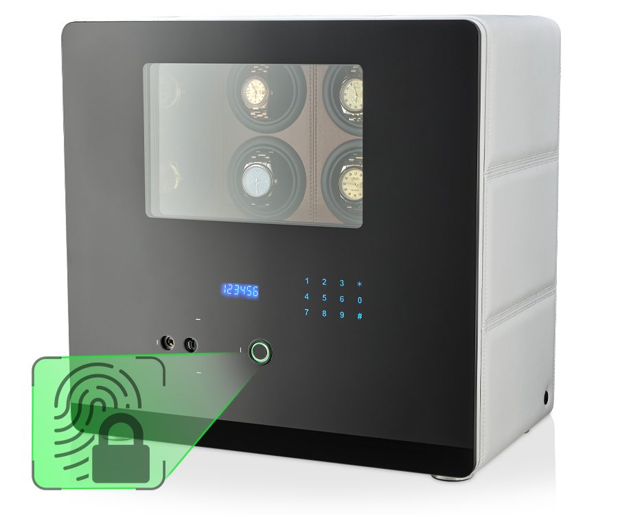 Сейф будет надежно беречь и подзаводить Ваши автоматические часы. Современные функции позволяют удобно пользоваться сложным электронным замком, для открытия которого вы можете использовать либо код, либо магнитную карту. Сейф для часов оснащен сигнализацией с возможностью установки режима чувствительности шок сенсора.