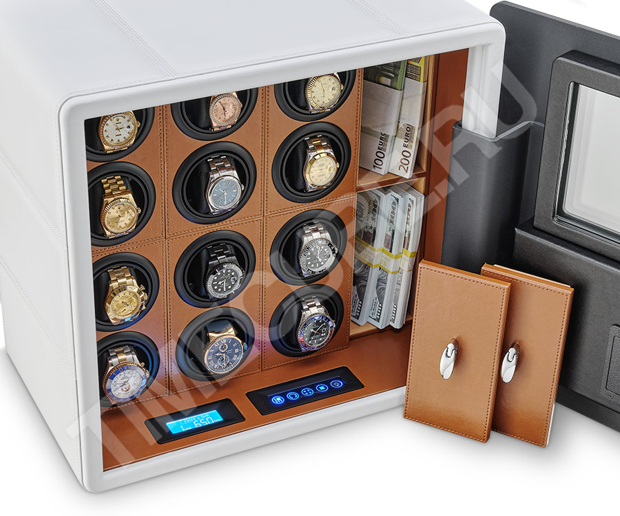 В сейфе расположено 12 роторов для подзавода часов. Каждый ротор управляется отдельно. Вы можете выбрать оптимальный режим подзавода для Ваших часов.