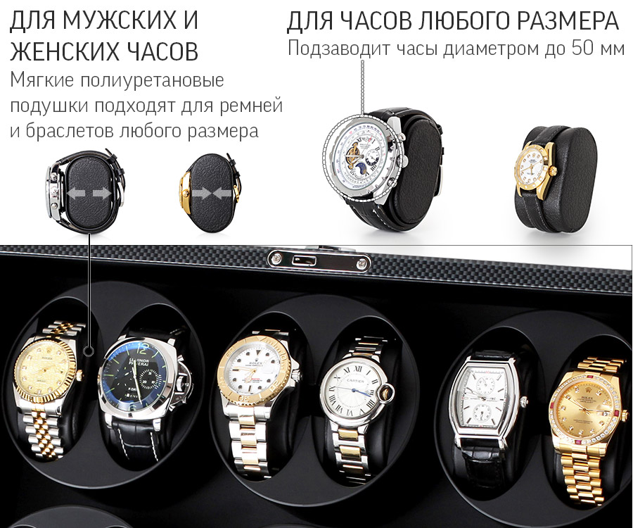 • ДЛЯ МУЖСКИХ И ЖЕНСКИХ ЧАСОВ: Универсальные держатели подходят для часов с ремешками или браслетами любой длины. Максимальный диаметр часов 45 мм.