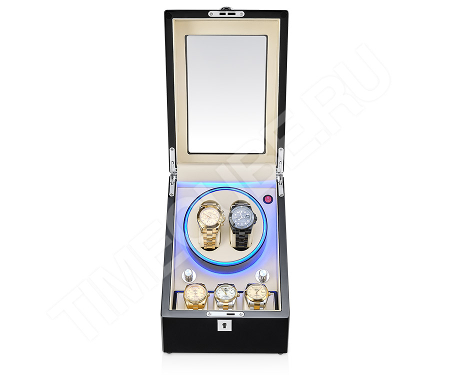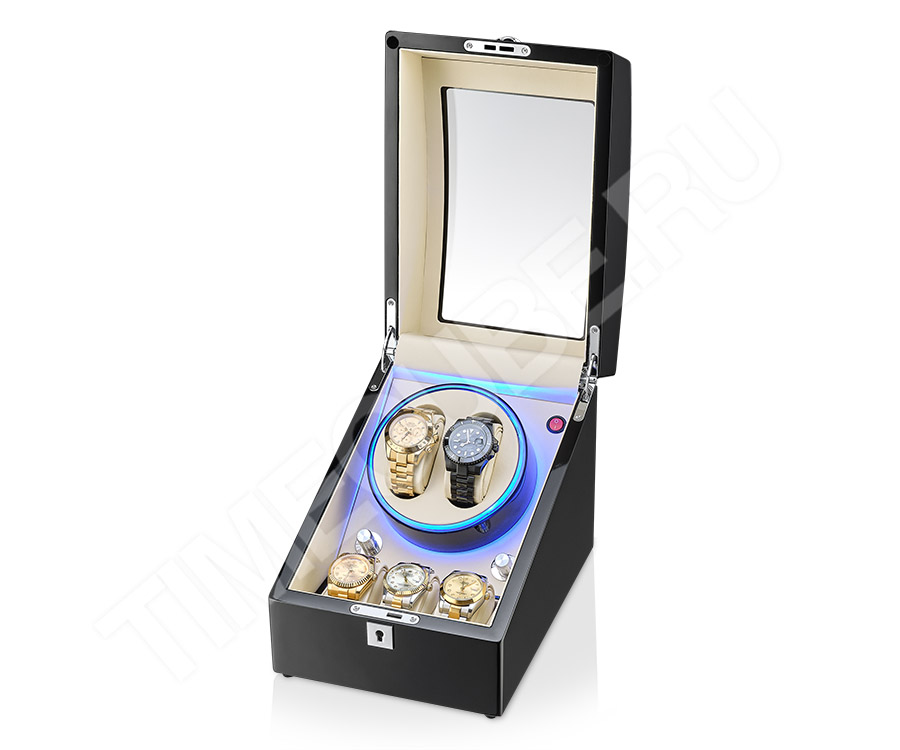 Шкатулка для часов с автоподзаводом CROWN-2+3-BWL-N Шкатулка для двух часов с автоподзаводом. Материал: дерево, покрытое множественными слоями глянцевого лака. Крышка с органическим стеклом. В приборе предусмотрена удобная функция остановки мотора при открытии крышки. Предусмотрена светодиодная подсветка. В шкатулке имеется секции с держателями для хранения трех часов. Виндер закрывается на ключик, чтобы обеспечить сохранность вашей коллекции. Шкатулка с автоподзаводом работает от сети 220 вольт или от двух батареек формата "D". Ширина подушки 3,5 см. Длина окружности подушки 20 см. Максимальная ширина ремешка/браслета 3,0 см. Максимальная высота часов 3,0 см. Размер прибора: 20х27х23 см. Размер упаковки: 34х28х32 см. Масса нетто: 2,95 кг. Масса брутто: 3,9 кг. PT3M58S 2025-12-07T04:56:26+03:00