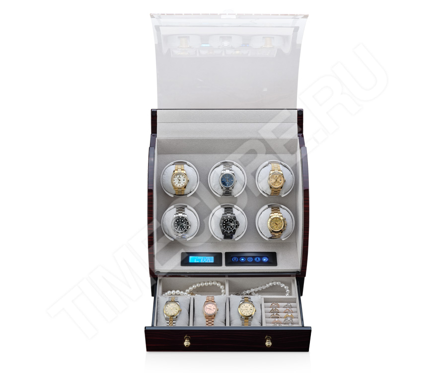 Шкатулка для механических часов с автоподзаводом 90326-EG Для подзавода шести часов. Материал корпуса: дерево. Внешняя отделка: лак. Внутренняя отделка: бархат. Синтепоновая подушка. Максимальный диаметр часов: 7,0 см. Дополнительные опции: - дисплей (LCD); - отсек для хранения. Размер прибора: 38х23х34 см. Размер упаковки: 46х33х43 см. Масса брутто: 8,4 кг. PT3M58S 2025-12-14T04:59:56+03:00