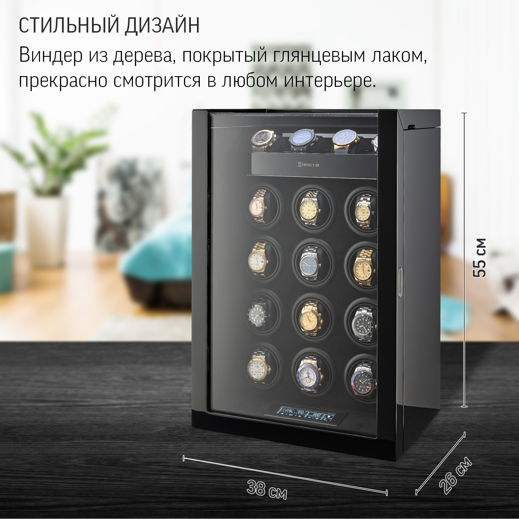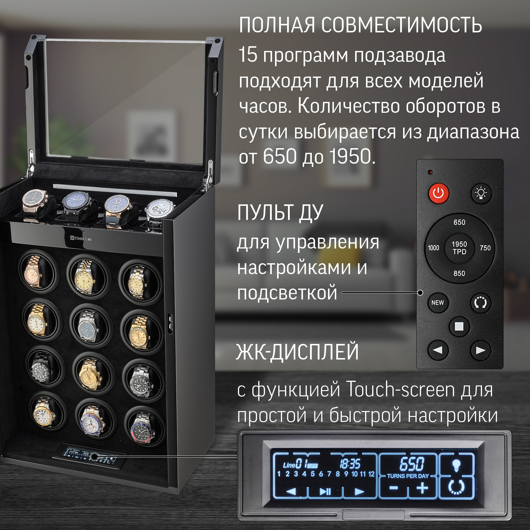 • ДЛЯ ВСЕХ МОДЕЛЕЙ ЧАСОВ: 15 режимов подзавода подходят для любых автоматических часов. Можно выбрать количество оборотов в сутки (TPD) и направление вращения.