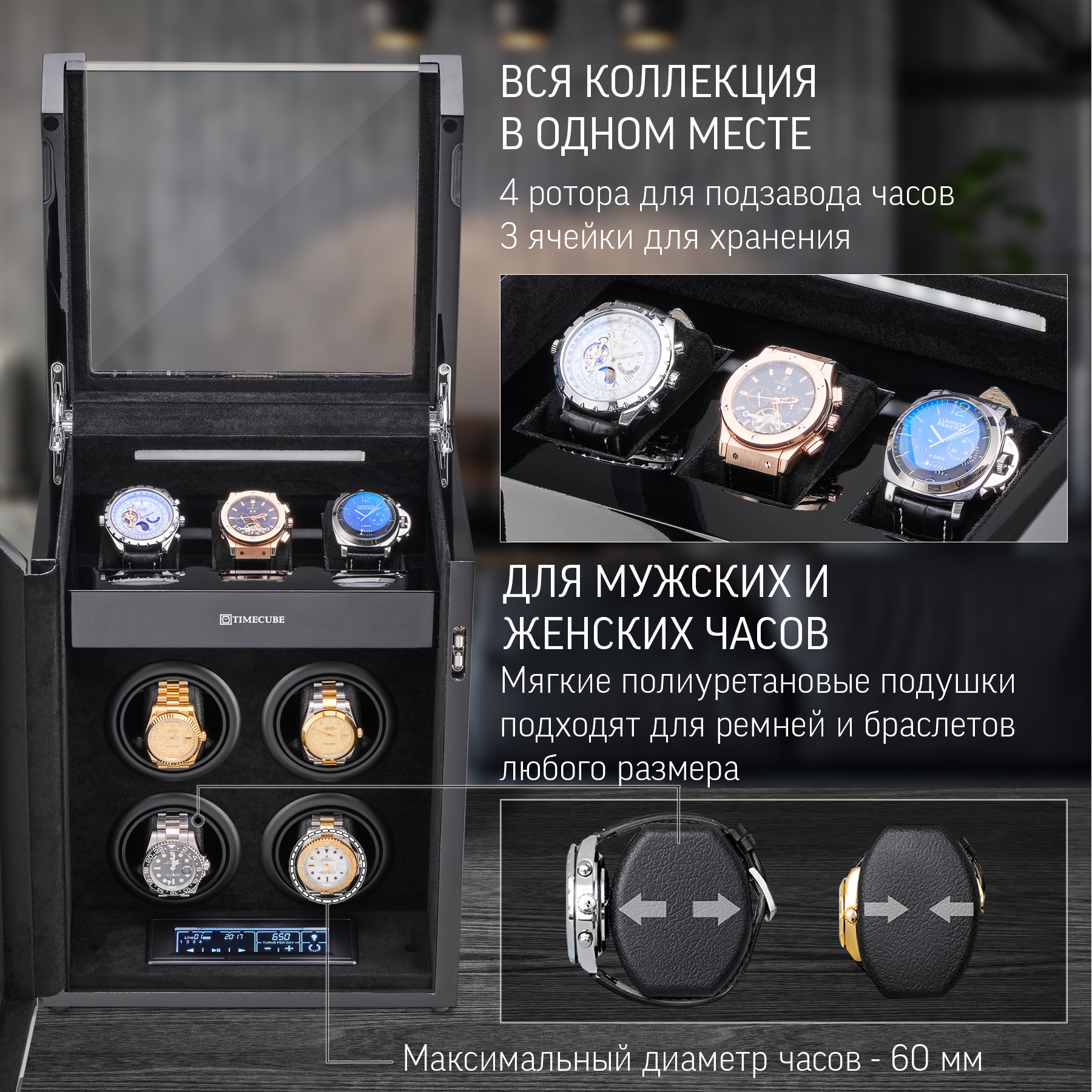 • ДЛЯ ВСЕХ МОДЕЛЕЙ ЧАСОВ: 15 режимов подзавода подходят для любых автоматических часов. Можно выбрать количество оборотов в сутки (TPD) и направление вращения.