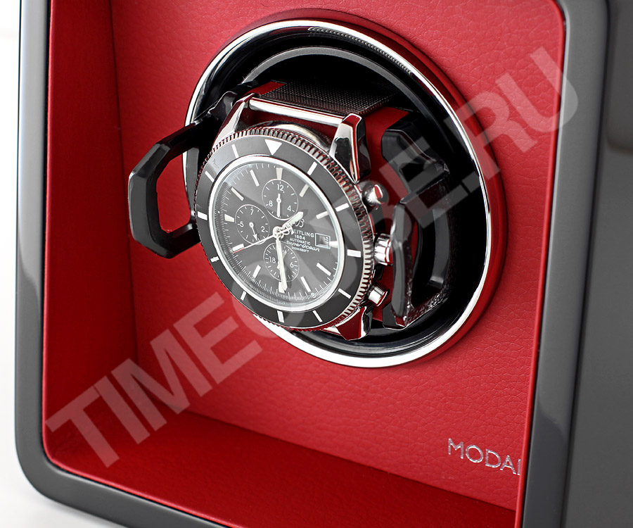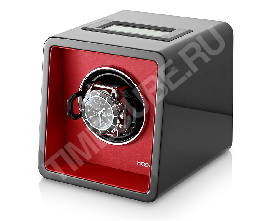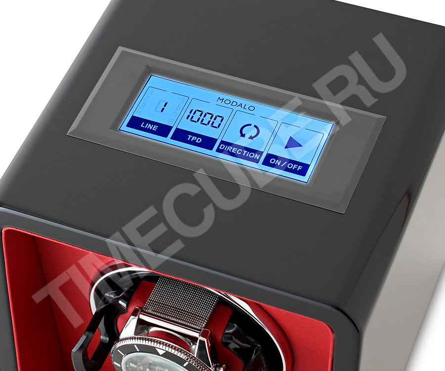 Шкатулка для подзавода часов удобно управляется с помощью тачскрина с подсветкой фиолетового цвета. Пользователь может выбрать любой из 24 режимов вращения, причем для каждого мотора отдельно.