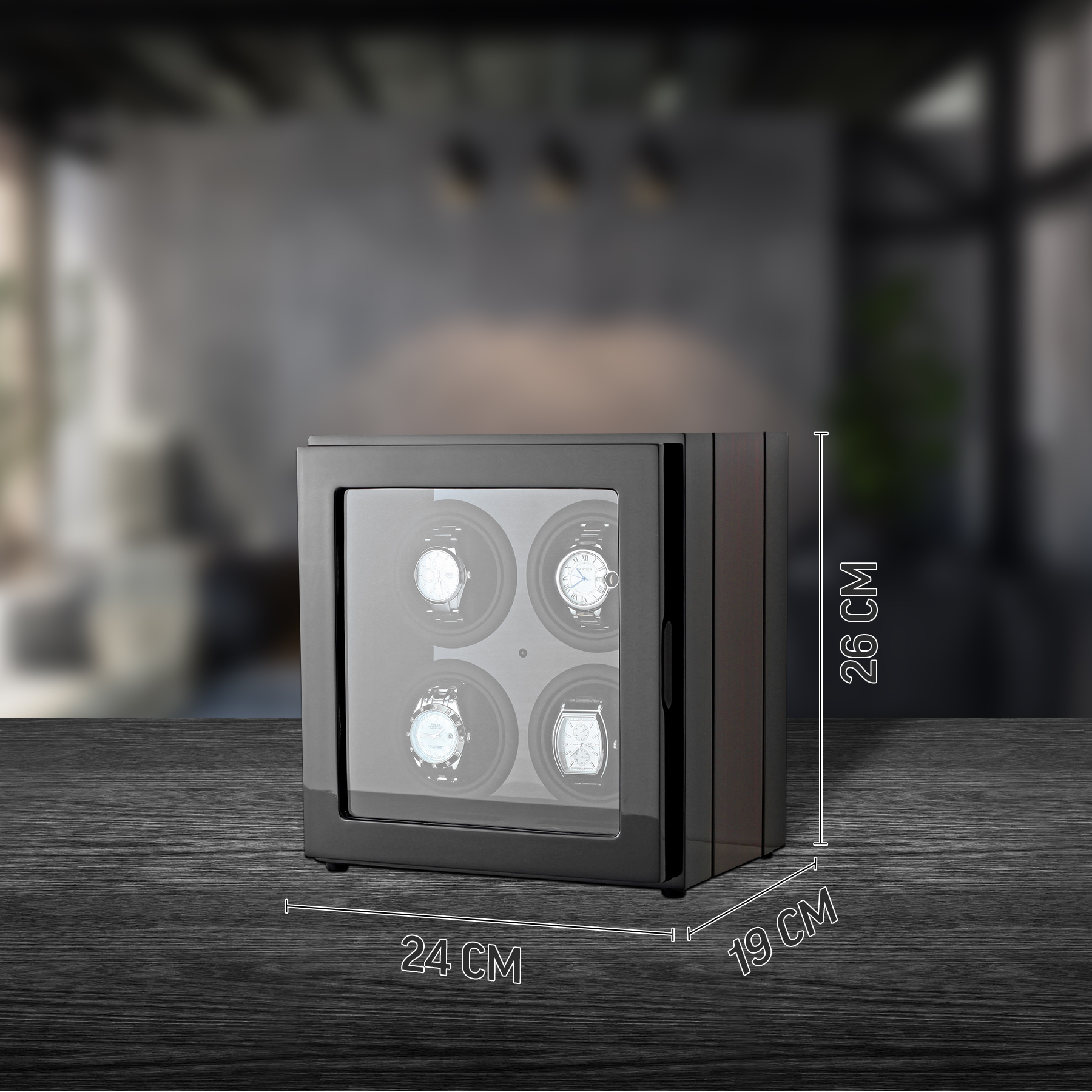 Шкатулка для часов с автоподзаводом 341-DBC-DF Для подзавода четырех часов. Материал корпуса: дерево. Внешняя отделка: лак. Внутренняя отделка: дерево. Полиуретановая подушка. Максимальный диаметр часов: 6,0 см. Дополнительные опции: - дисплей (LCD); - подсветка; - пульт управления; - стоп мотор. Размер прибора: 23,5х19х25 см. Размер упаковки: 33х28х38 см. Масса нетто: 3,4 кг. Масса брутто: 4,5 кг. PT3M58S 2025-12-07T04:56:56+03:00
