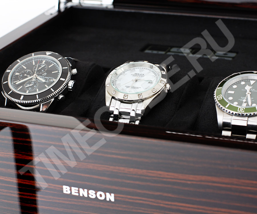 — фирма из Голландии (Нидерланды), расположенная в городе Uden. На рынке шкатулок для часов с автоподзаводом фирма работает с 2007 года. С самого начала деятельности Benson сфокусировалось на изготовлении виндеров премиум сегмента. Завод выпускает интересные модели, опережающие время, которые сразу же становятся объектом копирования китайских заводов.В 2016 году фирма представила целую линейку великолепных и изысканных виндеров – «Black Series». Шикарные виндеры этой серии имеют массивный деревянный корпус с отделением для хранения механических часов. Особой гордостью серии является панель управления и функция памяти.Электронную начинку - моторы, панели управления, подсветки Benson заказывает исключительно у японских производителей. Это гарантирует надежность и долговечность виндеров.В 2015 году только в одной Голландии объем продаж виндеров Benson составил 4000 штук.C 2016 года Tumecube.ru получил статус эксклюзивного дистрибьютора Benson на всей территории России.