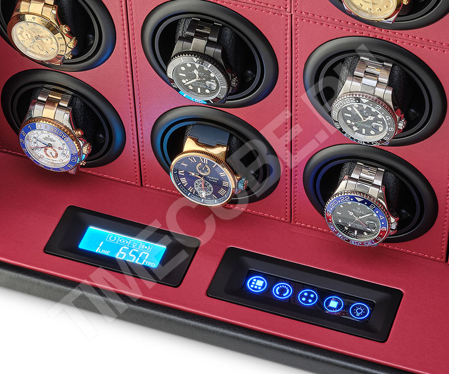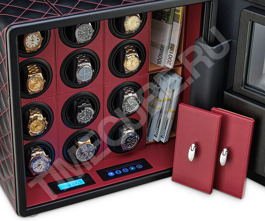 В сейфе расположено 12 роторов для подзавода часов. Каждый ротор управляется отдельно. Вы можете выбрать оптимальный режим подзавода для Ваших часов.
